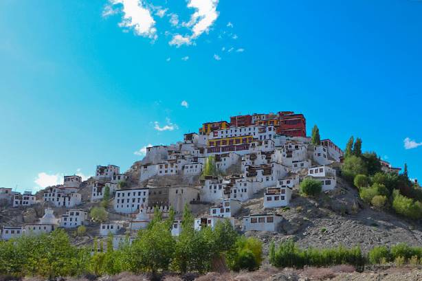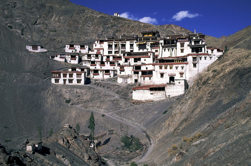 Chemrey Monastery was built during the seventeenth century in memory of the king Sengge Namgyal and it belongs to the Drukpa order. This beautiful gompa dominating the village and the fields is located on the road leading to Pangong Lake, 45 kilometres from Leh, at an altitude of 3,650 metres. The monastery has many temples and prayer halls, a 3-metre-high statue of Padmasambhava can be seen in one of the shrines. It also contains a precious collection of sacred scripture decorated with silver and gold.
