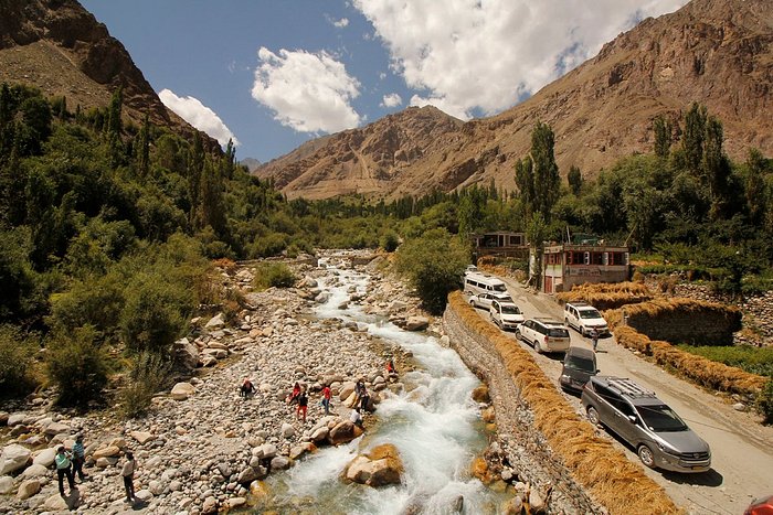 Panamik is located 23 kilometres north of Sumur on the way to the Siachen glacier base camp. It is a scenic village studded with whitewashed stupas on the left bank of the Nubra River. Panamik is famous for its Sulphur hot spring which is believed to have medicinal virtues.