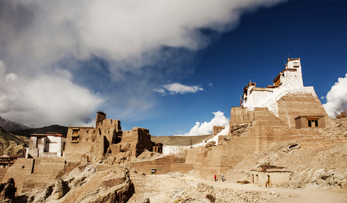 Basgo, 45 kilometres west of Leh, was the capital of lower Ladakh until the kingdom was united in 1470. The ruins of the citadel crown several rocky peaks. Three miraculously preserved temples can be visited, one of them is the Chamba Gompa which houses a two-storey-high statue of Maitreya Buddha (the Future Buddha). The temple’s walls are decorated with magnificent frescoes of bodhisattvas and guardian deities. The village of Basgo appears like an oasis in the rugged mineral landscape, it is a pleasant place for a stroll.