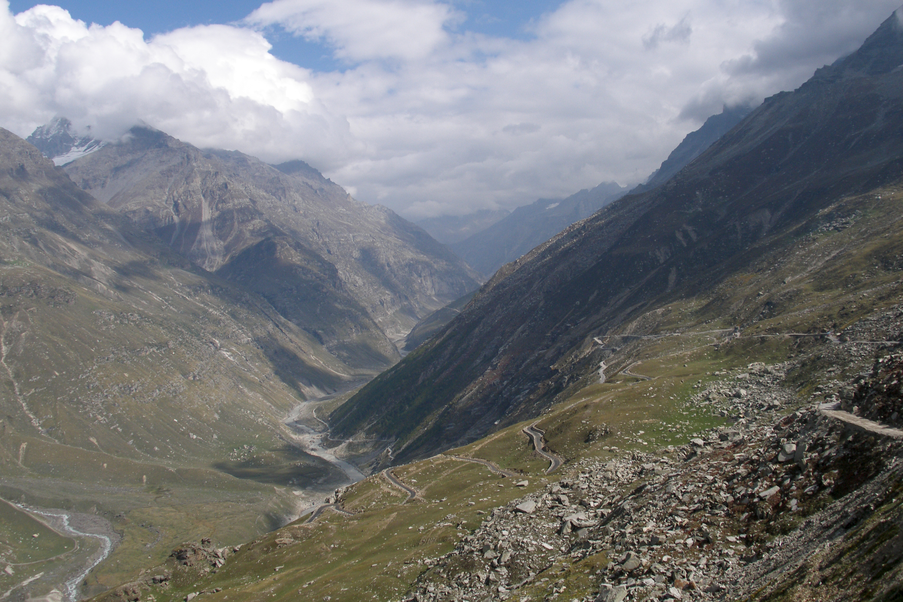 Zoji La is a mountain pass between Ladakh and Kashmir, on the Leh-Srinagar road. It is located at 3,528 metres above sea level (11,570 feet), 320 kilometres from Leh and 102 kilometres from Srinagar. The pass is closed during winter but a 14- kilometre tunnel currently under construction will provide all-year access to Ladakh in the future. The road in the vicinity of the pass, in Sonamarg area, goes along beautiful high-sided alpine valleys.