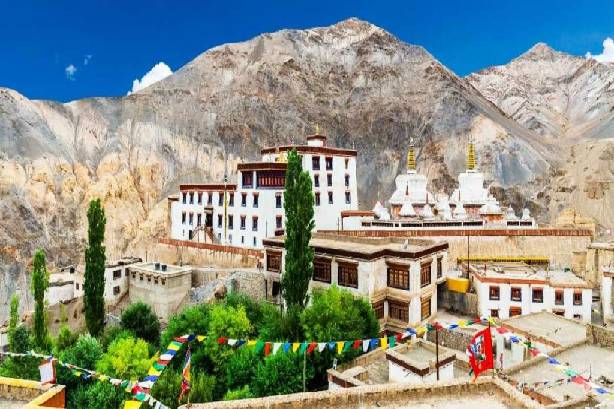 Shey Palace, located 14 kilometres from Leh on the Leh-Manali road, was built in the middle of the seventeenth century by the king Deldan Namgyal. It was used as a summer palace by the kings of Ladakh until 1834. Today, the palace is mostly in ruins. The palace monastery was also built by the king Deldan Namgyal in homage to his late father the king Sengge Namgyal, it was consecrated in 1647 by Tagsangrepa. The temple contains a highly revered 12-metre-tall copper statue of Shakyamuni (the historical Buddha) gilded with approximately 5 kilograms of gold.