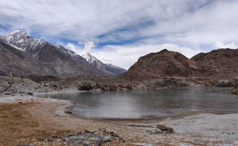 Chumathang is a village situated 140 kilometres from Leh on the way to Tso Moriri Lake, at 4,000 metres altitude on the bank of the Indus River. Chumathang is known for its hot springs which are reputed to have a number of therapeutic benefits. A few restaurants and guesthouses can be found in the village.
